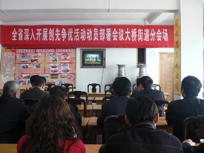 4月30日,大橋街道組織收看全省深入開展創先爭優活動動員部署會議。街道黨委負責同志、分管組織同志以及各村(社區)黨組織負責人同志共計20余人參加會議(圖為大橋街道分會場)。