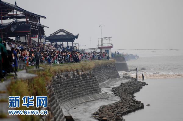 9月23日,游客在觀看錢塘江潮。新華社記者黃宗治攝