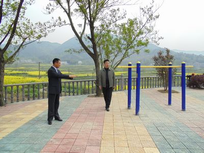 4月1日,區文廣新局到五橫鄉楊亭村張沖組檢查農民健身工程建設、安裝情況。
