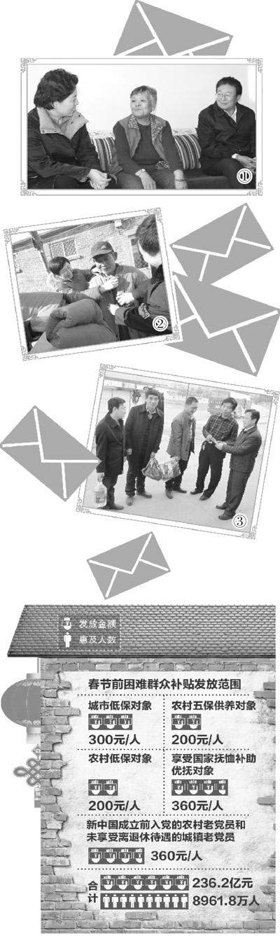 “溫暖過節”,共享和諧。為確保給困難群眾的春節“紅包”補貼及時、足額發放到位,各地民政部門周密組織實施。許多地方提前預撥或墊支資金,圓滿完成春節前為困難群眾發放一次性生活補貼236.2億元,惠及8961.8萬城鄉困難群眾。
