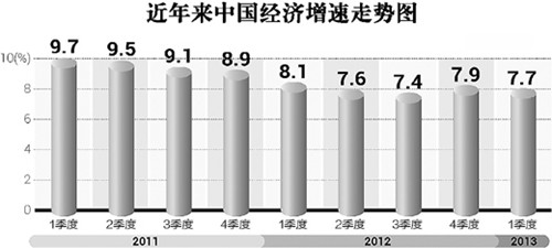 中國經濟在2012年走出了下行、企穩、回升的曲線后,今年一季度GDP同比增幅又回了一下頭,從去年四季度的7.9%降到7.7%,人們的疑慮和擔心由是而生。