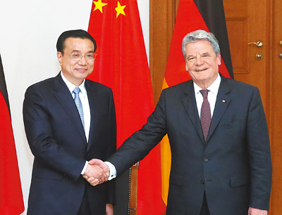 高克歡迎李克強訪德,并請轉達對習近平主席的親切問候。高克說,德中都擁有悠久歷史和燦爛文化,兩國關系近年發展良好。德國欽佩中國經濟社會發展取得的成就,愿同中方加強政治、經濟、人文等領域的合作與對話,推動兩國關系取得新發展。