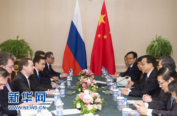 李克強指出,上海合作組織是中俄開展戰略合作的重要平臺,雙方應保持密切溝通,攜手推動上合組織向前發展,在安全和務實合作兩方面不斷取得新成果。要加快推進上合組織互聯互通建設,深化投資和金融合作,加強生態和能源合作,促進人文交流,共同維護地區和世界的和平、穩定與發展。