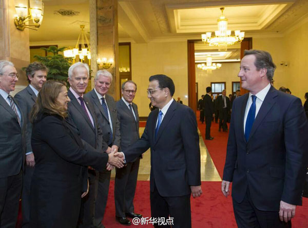 李克強(qiáng)與卡梅倫共同會見英國企業(yè)家代表