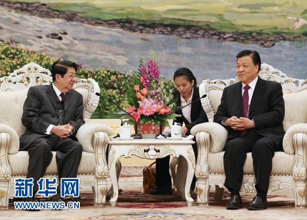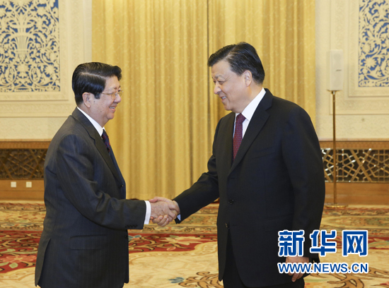 12月18日,中共中央政治局常委、中央書記處書記劉云山在北京人民大會堂會見由索安副首相率領的柬埔寨人民黨代表團。 新華社記者丁林攝