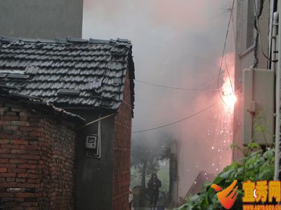 工作人員趕到現場后發現總鋪社區荷葉組一居民房屋外低壓電纜遭受雷擊,火光四濺,立即組織人員疏散周圍群眾,并電話聯系供電部門,采取斷電措施。