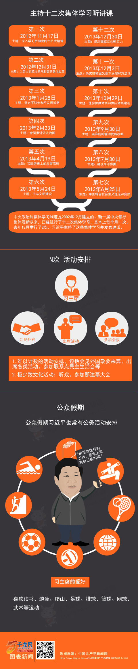 “我個人的時間都去哪兒了?當然是都被工作占去了。”今年2月初,習近平在俄羅斯索契接受俄羅斯媒體專訪時說。根據官方媒體公開報道所不完全統計,自中共十八大至今的近15個月里,習近平國內考察調研、出訪、參加各類會議共80余次,足跡遍及國內三分之一的省份和世界五大洲。