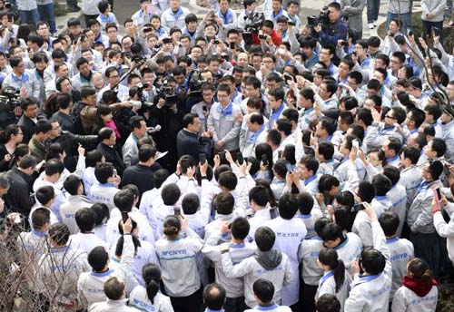 人民網沈陽3月26日電(記者 楊佳)國務院總理李克強26日來到沈陽鐵西區遠大科技創業園考察。李克強對企業自主研發的PM2.5過濾、脫硫脫硝設備非常關注,詳細詢問技術推廣實用以及成本投入情況。他鼓勵企業,在國家政策的支持下,盡快推廣應用新技術,一方面治理霧霾天氣,同時帶動發展環保產業,一舉兩得。