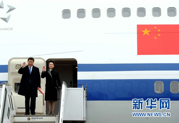 習近平是在結(jié)束對法國的國事訪問后抵達柏林的。離開巴黎時,法國政府掌璽和司法部長托比拉、瓦勒德馬恩省省長勒魯?shù)确ǚ礁呒壒賳T到機場送行。機場舉行了隆重的歡送儀式,習近平檢閱儀仗隊,軍樂隊奏中法兩國國歌。