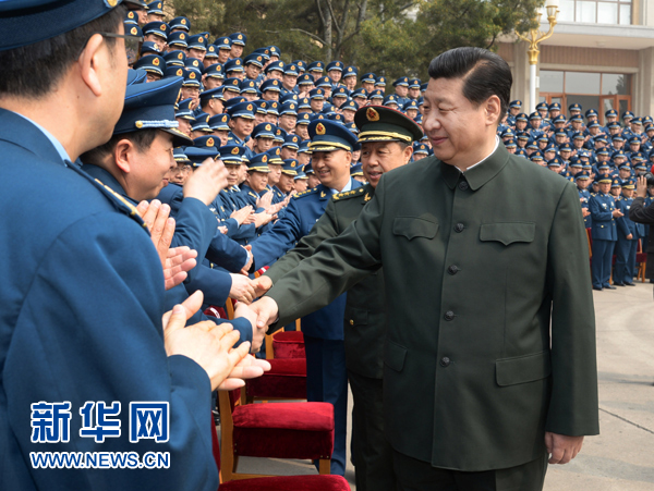 新華網北京4月14日電(記者張玉清、李宣良)中共中央總書記、國家主席、中央軍委主席習近平14日專程到空軍機關就空軍建設和軍事斗爭準備進行調研,代表黨中央、中央軍委向空軍全體官兵致以誠摯的問候,強調要緊緊圍繞黨在新形勢下的強軍目標,全面加強部隊革命化現代化正規化建設,加快建設一支空天一體、攻防兼備的強大人民空軍,為實現中國夢、強軍夢提供堅強力量支撐。