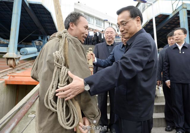 李克強(qiáng)撫著“棒棒”的背,叮囑保護(hù)好腰