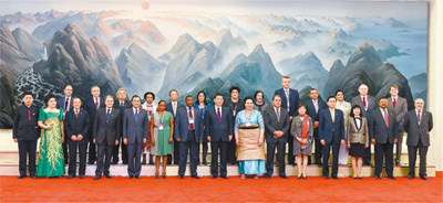 湯加公主圖伊塔,日本前首相鳩山由紀夫,圣馬力諾中國友好協會主席泰倫齊,非盟委員會前主席、加蓬前外長讓·平,美國前總統尼克松外孫考克斯等分別致辭。他們贊賞中國在相互尊重、平等相待、互利共贏基礎上同世界各國發展友好合作關系,贊揚中國作為負責任的大國,為維護世界和平、促進共同發展發揮的建設性作用,希望中國人民對外友好協會為促進中外人民相互了解與友誼作出更大貢獻,呼吁世界各國人民秉持和平、友愛、合作的理念,攜手開創世界美好未來。