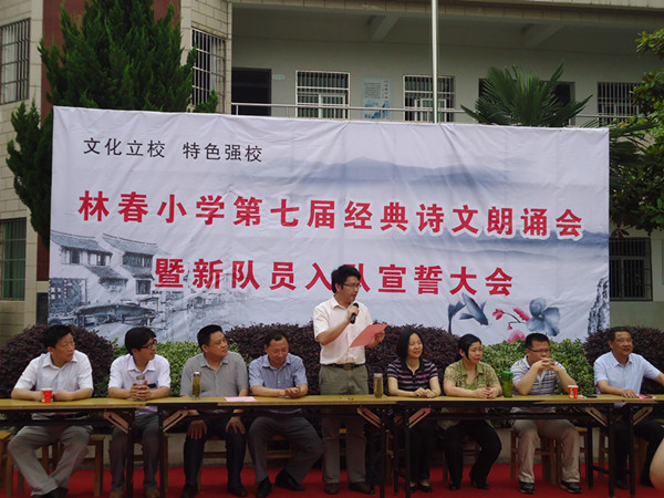 活動(dòng)在羅嶺中心學(xué)校校長(zhǎng)金和常的開幕詞中拉開序幕,他希望該校的全體師生,堅(jiān)定不移地走個(gè)性化、特色化和文化立校的內(nèi)涵式發(fā)展之路,并通過誦讀活動(dòng)的開展使學(xué)校的辦學(xué)品位不斷提升,品牌效應(yīng)不斷顯現(xiàn)。之后,民政局領(lǐng)導(dǎo)向林春小學(xué)捐贈(zèng)了5000元的慰問金,此舉是踐行黨的群眾路線活動(dòng)的具體行動(dòng),深深地感動(dòng)了學(xué)校的每位師生。接著,徐永生書記對(duì)關(guān)心支持教育的各級(jí)領(lǐng)導(dǎo) 及社會(huì)各界人士表示衷心的感謝,并鄭重宣布本次活動(dòng)開幕。之后,匯演活動(dòng)正式開始,師生們同臺(tái)演出,他們把對(duì)詩(shī)詞的熱愛、理解、追求,或誦、或演、或唱、或舞地表達(dá)出來。精彩紛呈的節(jié)目,博得了領(lǐng)導(dǎo)嘉賓們的陣陣喝彩,會(huì)場(chǎng)上不斷地響起了雷鳴般的掌聲。最后,領(lǐng)導(dǎo)們與演出代表合影留念。