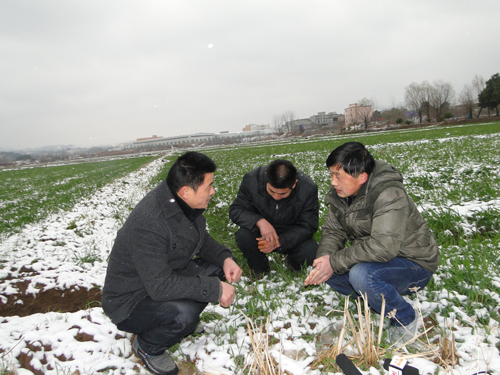 (圖為2月18日大龍山鎮農技人員指導種植大戶的情景 丁厚祥 攝影)
