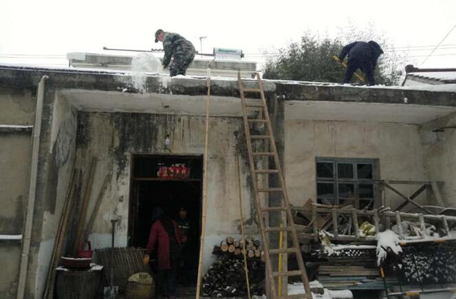 救援人員立即制定救援方案,組織精干民兵爬梯子、上屋頂,克服濕滑、恐高等困難,對平頂處用鍬鏟,屋脊處用自制的長柄鏟刮,經過近兩小時的快速清理,積雪基本得到清除,隱患得以消除,汪長貴夫婦連聲感謝。