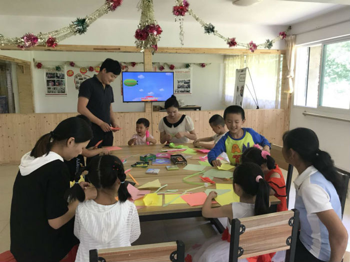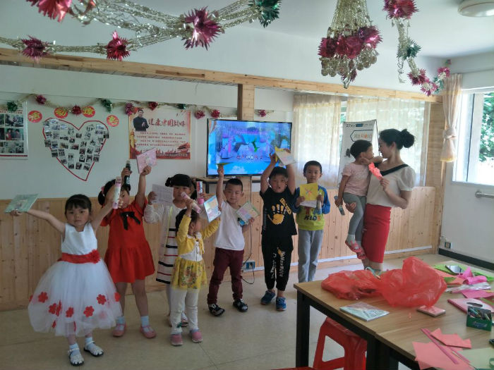 活動在歡樂的歌聲中開始,志愿者為小朋友分發彩紙、蠟筆、膠水等材料,大家都迫不及待地動起手來。游戲過程中,小朋友們自由發揮,大膽創作,家長及志愿者們在旁指導,孩子們用彩紙折出紙飛機、小船、千紙鶴等作品,他們時而精心專注于自己創作,時而向旁邊的小朋友討教學習,沉醉在節日的歡樂中。