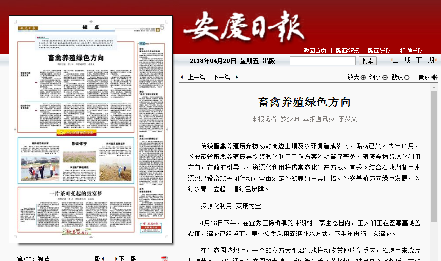 去年11月,省政府辦公廳印發《安徽省畜禽養殖廢棄物資源化利用工作方案》,要求以沼氣和生物天然氣為主要處理方向,以農用有機肥和農村能源為主要利用方向,全面推進畜禽養殖廢棄物資源化利用,加快構建種養結合、農牧循環的可持續發展新格局。