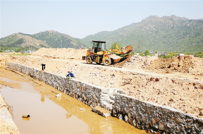 4月10日,在宜秀區大龍山鎮桃元社區洪沖水庫泄洪溝渠,施工人員正在進行施工作業。宜秀區大龍山鎮桃元社區美麗鄉村河道污染環境治理工程總投資532萬元,全長1.59公里,治理內容包括:河道疏浚及堤防加固、岸坡防護、沿線建筑物工程等。該工程2017年10月開工,工期6個月。工程完工后可有效提升洪沖水庫泄洪能力,同時也改善周邊居民的生活環境。