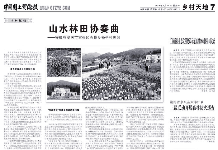 安徽省安慶市宜秀區五橫鄉楊亭村近年來通過開展村莊綜合整治,發展生態旅游,促進了鄉村振興,帶動了貧困群眾脫貧致富。該村獲得 “中國最美休閑鄉村”“中國美麗宜居示范村莊”和省級“水環境優美鄉村”“森林村莊”“美麗宜居村莊”等10多個榮譽稱號。