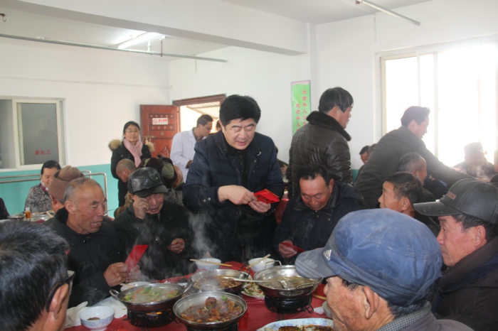 座談會后,婁雪松等區領導還與敬老院老人們共聚小年午餐。在一片祥和歡樂的氣氛中 ,婁雪松與老人們親切交流,并為每位老人送上壓歲紅包,祝愿他們健康長壽、安度晚年。