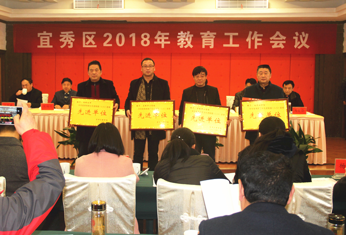 陳亞玲在講話中充分肯定了一年來宜秀區教育工作取得的成績,就2018年工作,她要求,一要以打造宜秀教育特色為主線,緊密圍繞安慶市提出的“教育強市”、“技工大市”、“體育強市”的奮斗目標,切實增強做好全年教育工作的責任感和使命感。二要以推進學校內涵建設為著力點,認真開展學校德育工作、扎實推進課堂教學改革、著力加強學校文化建設、全面強化教師隊伍建設,努力增強宜秀教育發展的軟實力。三要以規范化管理為主抓手,加強校長隊伍建設、推進依法行政和依法治校,全面優化教育系統的作風和形象。