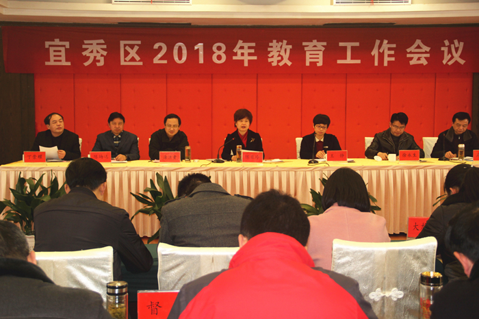 2月27日上午,宜秀區2018年教育工作會議召開,市教體局副局長陳亞玲,副區長王靜,區政協副主席涂潔貴出席會議,區教育局班子成員,各鄉鎮(街道)分管負責同志,各中學、中心學校校長、書記、副校長,各完小校長、公民辦幼兒園園長,舒州中學負責同志等參加會議。