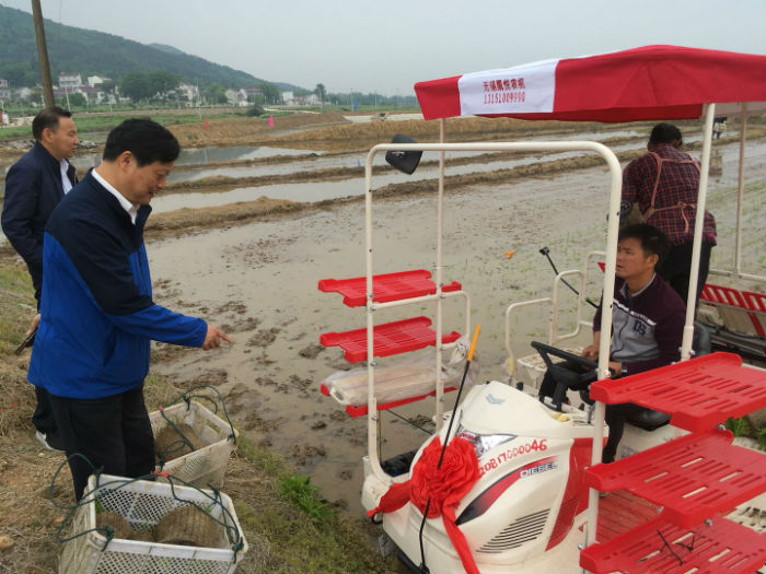 宜秀區首家再生稻示范點機械化種植插秧忙