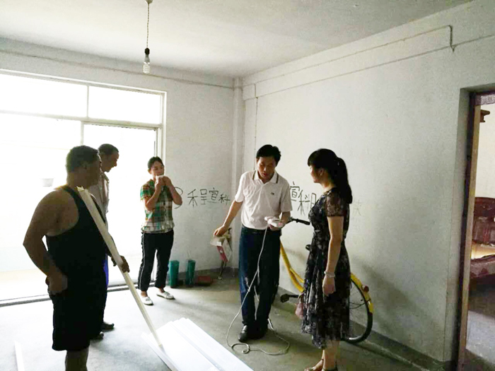 圖為胡云霞與幫扶單位一起為宣轉(zhuǎn)蘭安裝可視閃光門鈴