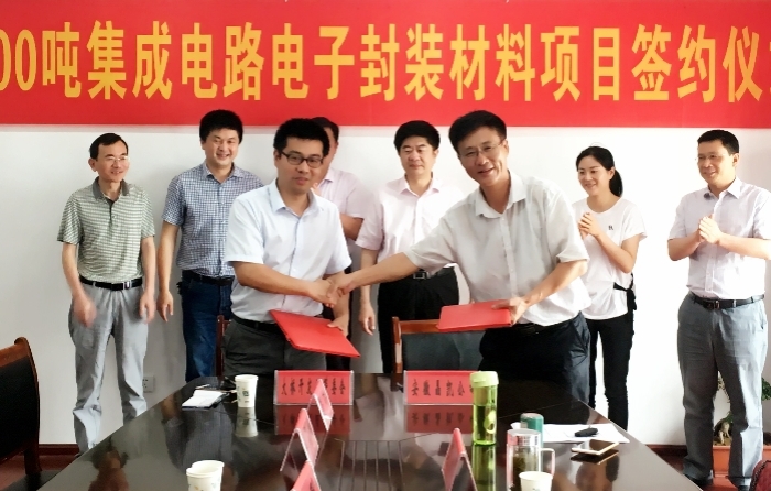 2018年5月29日上午,宜秀區舉行晶凱年產4萬噸集成電路電子封裝材料項目簽約儀式,區委書記婁雪松出席簽約儀式并講話,區級領導張耿、姚翔、吳昌維、馬韜及安徽晶凱電子材料有限公司總經理邱曉生出席。