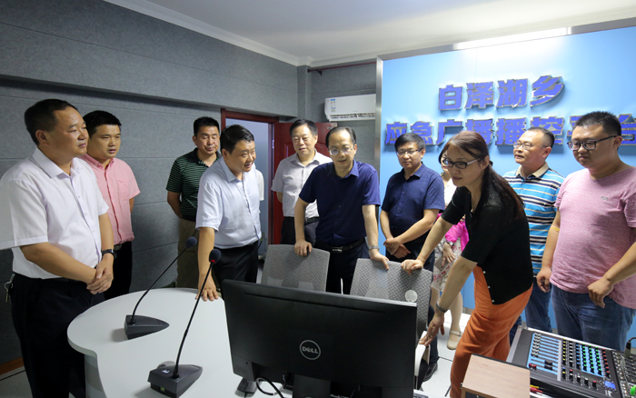 陳燁一行認真聽取了市、區兩級重點項目工作匯報,并實地查看了白澤湖鄉應急廣播播控平臺,對宜秀區廣電行業重點項目工作所取得的成績給予了充分肯定。