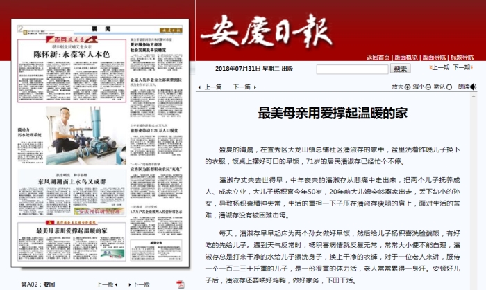 [安慶日報] 最美母親用愛撐起溫暖的家