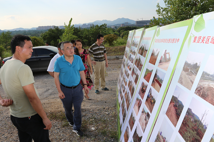 督察組一行先后來到集賢關廢棄宕口綜合治理工程、加寶工業園、天朋屠宰場、金隆園食品廠、億鑫源工業園、鑫保羅衛浴、藕花賽湖、花山村養殖場、余灣村龍山桔苑小區等地進行現場核查。