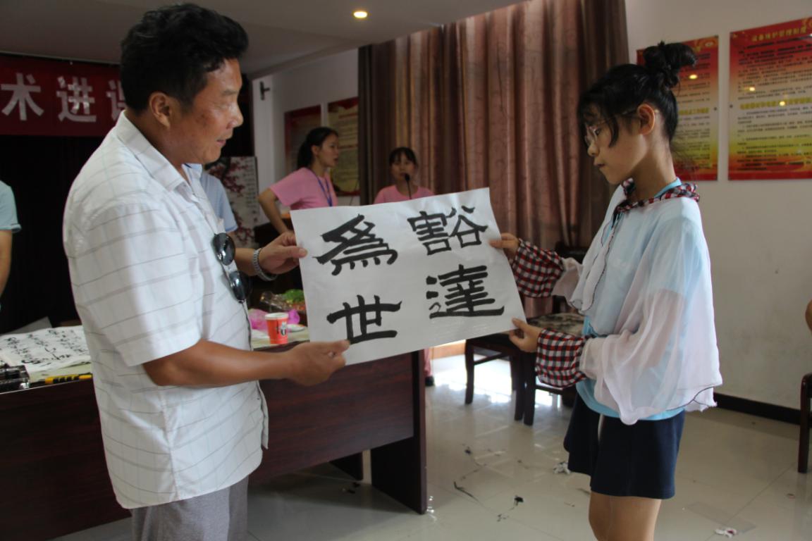 書(shū)畫(huà)老師們首先講解了中國(guó)書(shū)畫(huà)藝術(shù)的歷史和發(fā)展,之后便開(kāi)始作品創(chuàng)作,小朋友們觀摩老師們創(chuàng)作的過(guò)程。在看完創(chuàng)作之后,小朋友們驚嘆不已,還有提出表示自己也想嘗試,老師握住他們的手一筆一劃的教如何寫(xiě)毛筆字,師生合作寫(xiě)出的作品讓大家贊不絕口。活動(dòng)結(jié)束后,老師們把自己在課堂上的作品贈(zèng)送給各個(gè)小朋友們。小朋友們紛紛表示回家之后一定向家人分享作品并且還要裝裱起來(lái)。