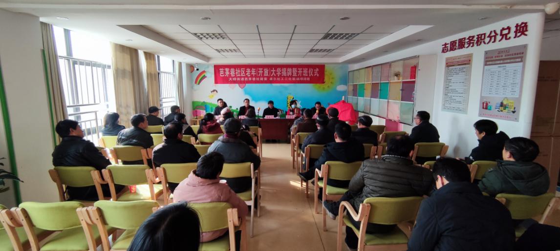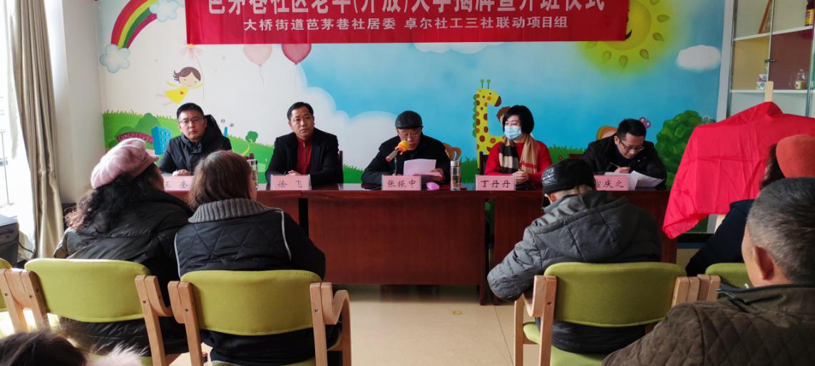 2020年12月27日,冬陽和煦,溫度回升,氣溫怡人。安慶市宜秀區大橋街道芭茅巷社區二樓居家養老服務站,座無虛席,喜氣洋洋,拭目以待芭茅巷老年(開放)大學揭牌儀式與開班第一課。