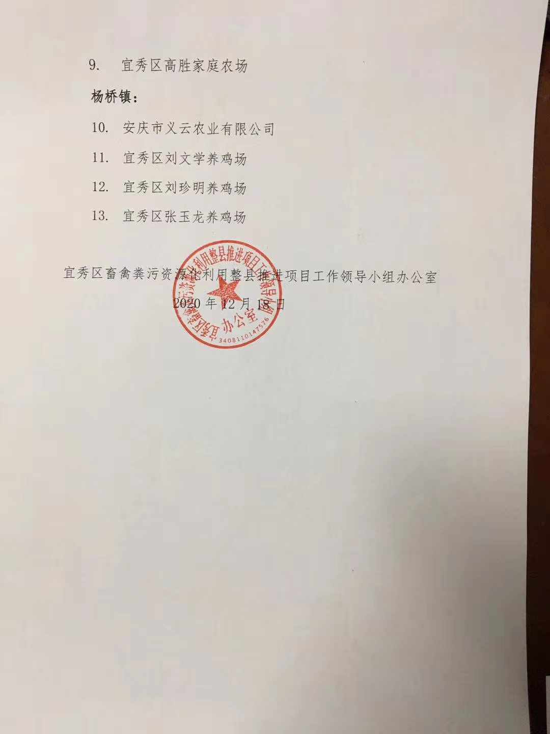 關于2020年宜秀區畜禽糞污資源化利用整縣推進項目擬實施主體名單的公示