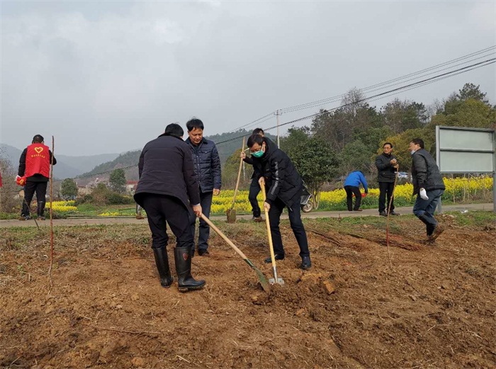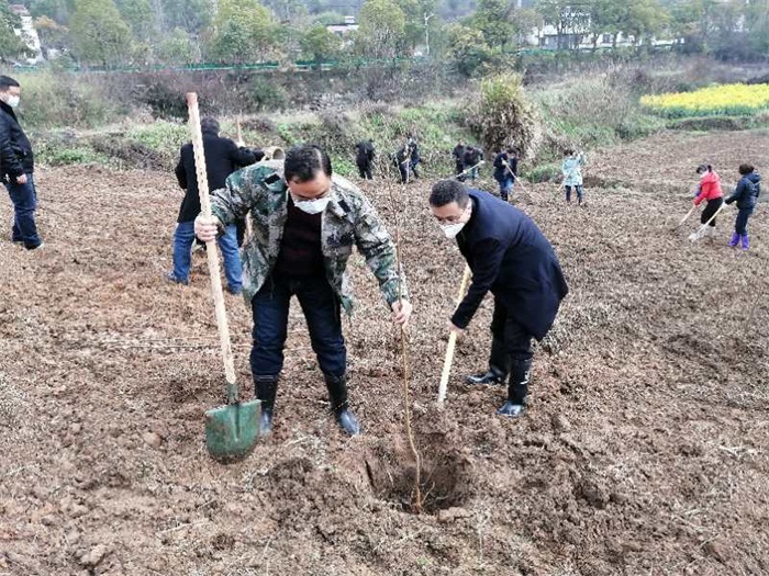 全體機關干部及部分群眾共百余人前往鮑沖湖村桃園基地開展義務植樹活動。該基地占地100畝,擬栽種4000株白桃、紅桃等果木打造百畝桃園,此舉不僅壯大集體經濟收入、帶動貧困戶就業,還為鄉村旅游增添一個新的景點。