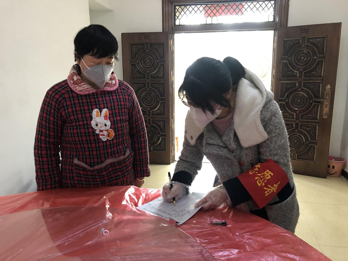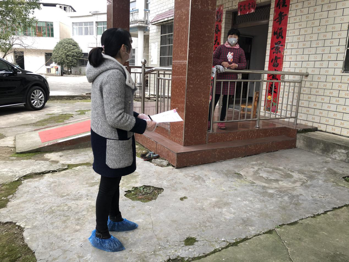 袁媛的丈夫是陸軍某部的一名干部,常年駐守祖國的大西北。兩人是高中同學,雖已結婚7年,卻一直都是“異地戀”,一般情況下半年才能見一次面,今年趁春節期間,袁媛的丈夫特地請了探親假,回家看望生病老人和妻子女兒。但是正月初二一早,這個闔家團圓的日子,袁媛就主動放棄與許久未見的“兵哥哥”團聚機會,堅守在抗擊疫情的最前線,和同事們一起,到武漢返鄉人員家中發放一封信、口罩、消毒液等物資,到密切接觸者家中配送中藥,在大楓集鎮噴灑消毒液……哪里有需要,哪里就有袁媛。