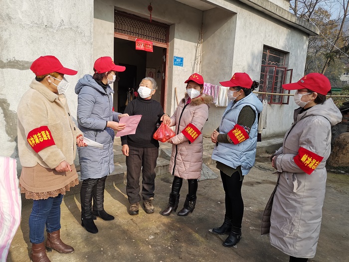 (楊橋鎮鮑春湖村巾幗志愿者服務隊為村內的150戶老人送去了溫暖)