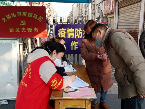 (大橋街道志愿者堅守芭茅巷社區同慶南苑、北苑小區參與疫情防控宣傳、小區進出人員登記、勸導、量體溫等志愿服務工作