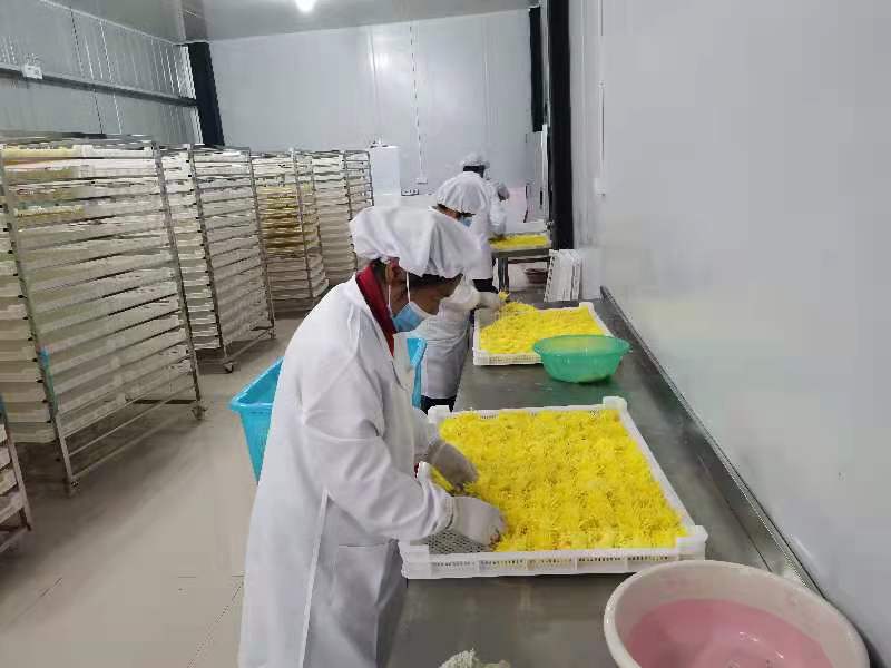 從前期的壓枝、移植、到后期的人工除草,采摘以及烘干都需要大量的人工,目前正值采摘期,這種臨時工每天都要20多人,這也解決了周邊村民的就業難題。在村里菊花基地的帶動發展下,村里大部分農戶已經嘗到了菊花產業帶來的“甜頭”。種植一片菊花,發展一個產業,鏈接一批農戶,富裕一方百姓,小小的菊花讓村民體會到“上班就在家門口,掙錢顧家兩相宜”,真正的實現了“產業興,百姓富,生態美”。