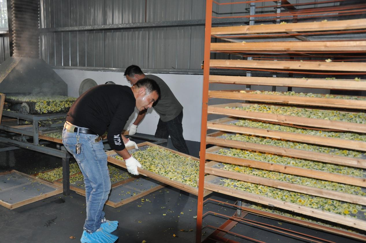 走進菊花車間的加工室內,數十名工人正忙著分揀、殺青、烘干,各條生產線忙而有序。菊花車間主要生產飲用菊花茶。車間的工作大多以小工為主,對村民來說容易學,上手快,而且工作穩定有保障,對于曾經的貧困村民來說能夠實現一人就業、全家脫貧。