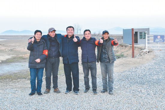 安慶菜子湖國家濕地公園保護中心工作人員和“鳥爺”王三益(左一)及志愿者們共同守護濕地和候鳥。