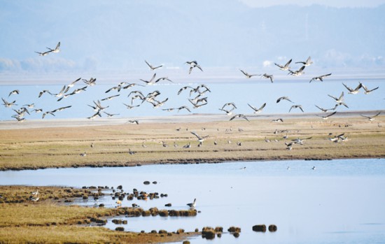 菜子湖濕地為長江中下游淺水湖泊的代表,位于東亞—澳大利西亞遷徙水鳥通道上,是國際上候鳥重要的遷徙停歇地、越冬地和繁殖地。然而,在10年前,因為生態條件和保護措施等原因,當地每年觀測到的候鳥不到2000只。近年來,安慶市和宜秀區將菜子湖濕地保護納入林長制、湖長制目標任務進行考核,成立安慶菜子湖國家濕地公園保護中心,并將保護管理經費納入政府財政預算。當地還投入2360萬元,完成對濕地公園范圍內全面禁牧、禁捕;拆除流域圍欄網4萬米,恢復湖泊人放天養模式;對濕地公園范圍內1800畝水面實施退耕還濕、退養還湖;對流轉退化區域濕地實施生態修復;組織開展濕地垃圾清理、濕地巡護、野生動物疫源疫病監測、反盜獵、濕地科普宣傳等工作。