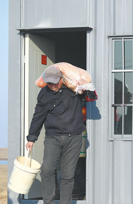為確保寒潮及大雪期間候鳥有食物,保護中心工作人員前往濕地中心投食。