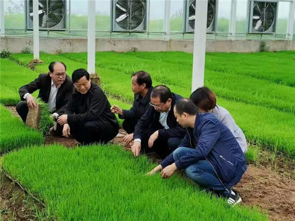專家對選育、育秧、栽插、秧苗管理給予技術指導服務。安慶宜秀區供圖