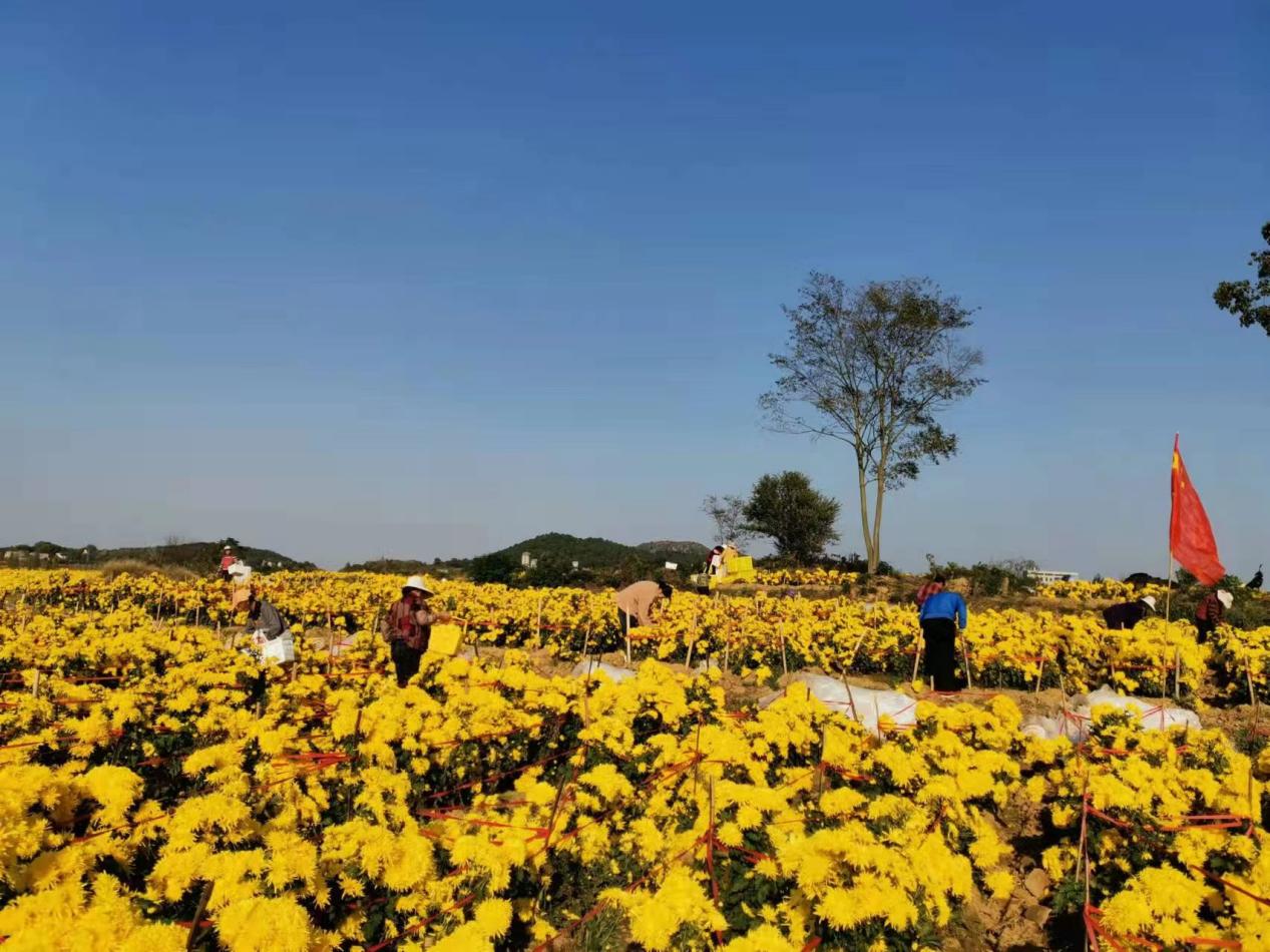 延長產業鏈條,助力產業升級。妙山村為大力發展菊花產業,促進三產融合,申請建立了占地1800平方米的菊花烘干車間,新增烘干設備10套,研發了菊花茶、菊花餅等深加工產品,申請注冊了“軒翥”牌產品標志,致力于提升品牌效應及市場競爭力。下一步還將開發菊花酒、菊花醬、菊花脯、菊花糕、菊花酥、等系列產品,不斷擴充品類,完善價值鏈。