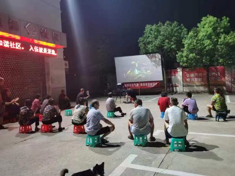 一塊幕布、一臺放映機,坐著板凳搖著蒲扇……8月8日晚,獨秀社區文化廣場上,居民們邀約一起,重溫了一把家門口看露天電影的“舊時光”。當晚,獨秀社區新時代文明實踐站組織開展以“宜城青年志氣高,投身軍旅獻國防”為主題的電影展映活動。