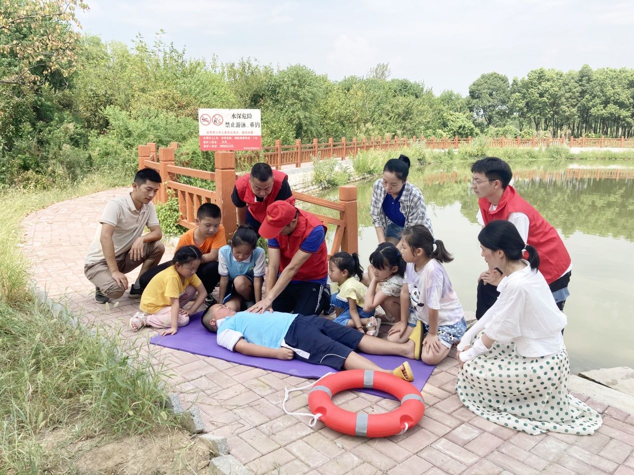 專業(yè)培訓(xùn)老師講述了可能會發(fā)生溺水的場地、溺水后如何自救等問題,現(xiàn)場還演示了對溺水者進(jìn)行緊急搶救,傳授安全急救技能,提高大家預(yù)防溺水的安全意識。
