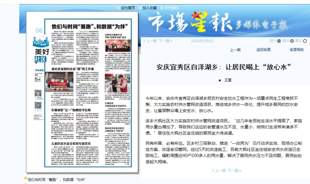 【市場星報】安慶宜秀區白澤湖鄉: 讓居民喝上“放心水”