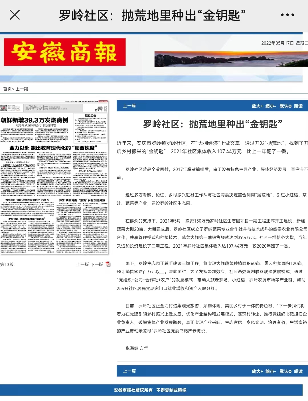 【安徽商報】羅嶺社區:拋荒地里種出“金鑰匙”